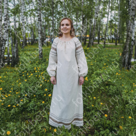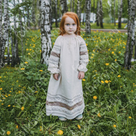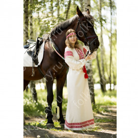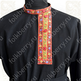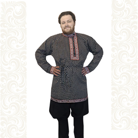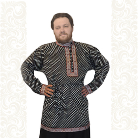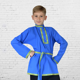 Эта модель косоворотки предназначена для детей, подростков и взрослых мужчин. Подходит как для традиционных русских мероприятий, так и для повседневной носки. Рубаха изготовлена из хлопка, украшена жаккардовой тесьмой с орнаментом по вороту, низу рукавов и самой косоворотки, имеет прямой крой, может подвязыватся поясом, который входит в комплект.