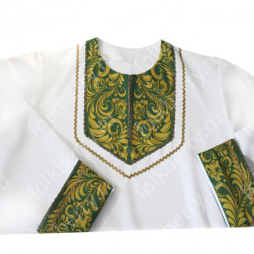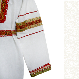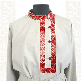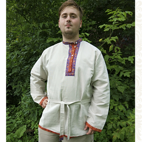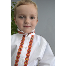 Данная модель – идеальный выбор для традиционного славянского мероприятия. Рубаха «Николай» выглядит очень нарядно и достойно. Сшита из габардина чистого белого цвета. Ткань плотная, мягкая, не мнущаяся. Красно-желтый узор «хохлома» на горловине, манжетах, подоле и поясе напечатан. Краски стойкие, не смываются, рисунок остается четким после многократных стирок.