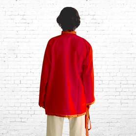 Косоворотка Оберег - прекрасный выбор как для повседневной носки, так и для семейных торжеств, православных мероприятий, концертов, ярмарок. Косоворотка сшита в русских традициях - свободная рубаха с застежкой с левой стороны, с поликами подмышками, с кушаком. Косоворотка украшена жаккардовой тесьмой (ширина 3 см) в славянском стиле (с изображениями-символами Здоровья, Удачи, Силы, Процветания). Зеленый цвет узора символизирует обновление жизни и процветание.