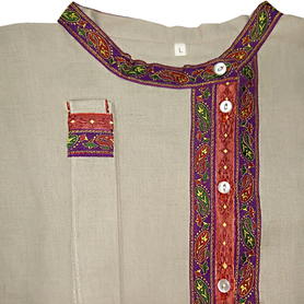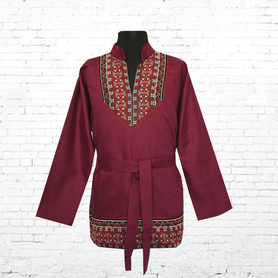 Стирать косоворотку нужно в воде комнатной температуры, сушить в расправленном виде, утюжить слегка влажной.