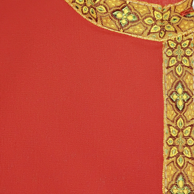 Косоворотка мужская "Православная" выполнена из небеленого льна и украшена народным геометрическим орнаментом в красных тонах. Планка, полики, пояс-кушак также выполнены из красного цвета.