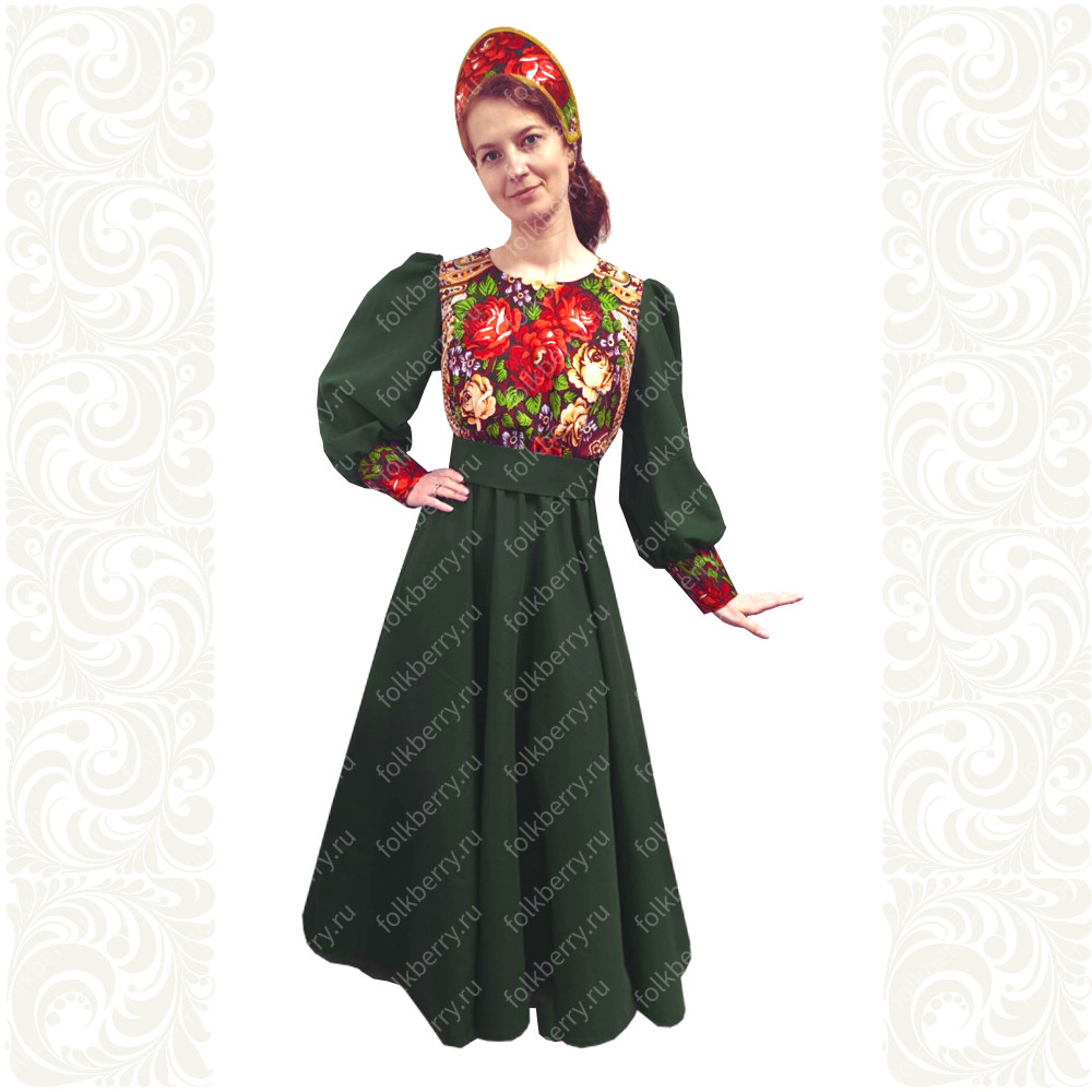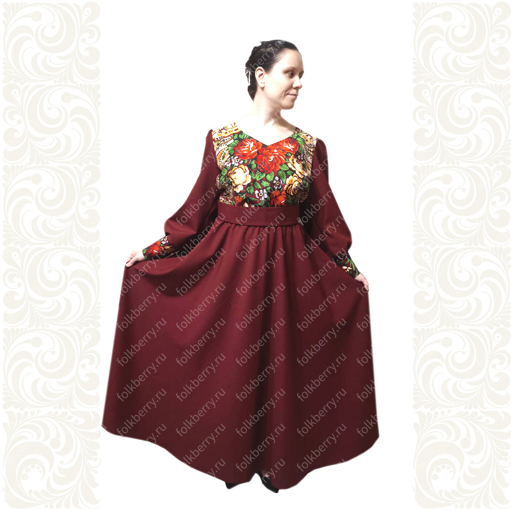 Декор платья - жаккардовая тесьма со славянскими символами. Талия немного завышена, пояс в комплекте.