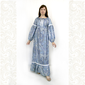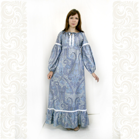 Платье «Гжель» приятного и благородного синего цвета с выразительным декором на основе гжельской росписи.