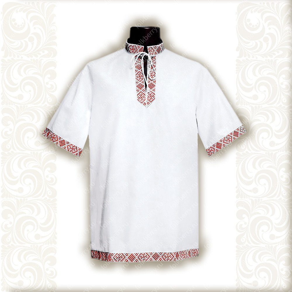 Рубаха Истоки, белый хлопок с красным