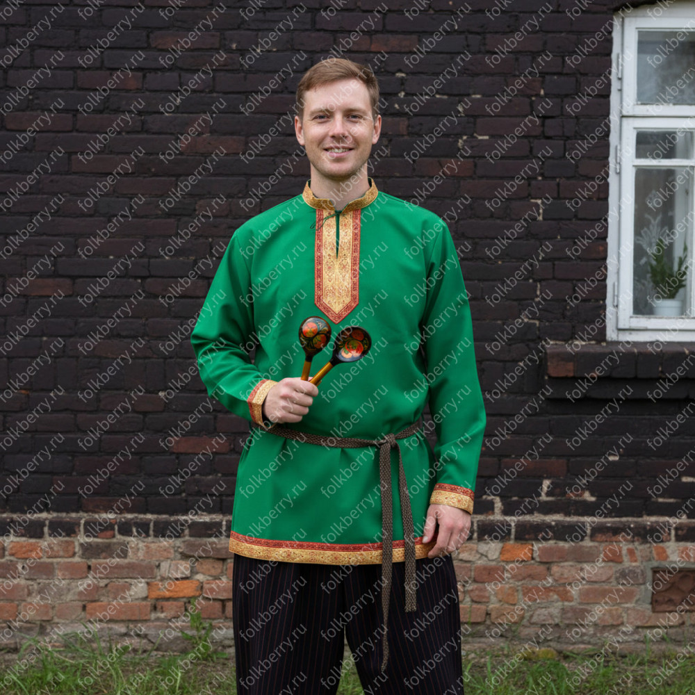 Рубаха Молодецкая, зеленый габардин