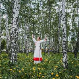 Праздничный и яркий сарафан с блузой «Жар птица» предназначен для выступлений на концертах, для театральных постановок, и участия в традиционных славянских праздниках и мероприятиях.