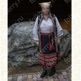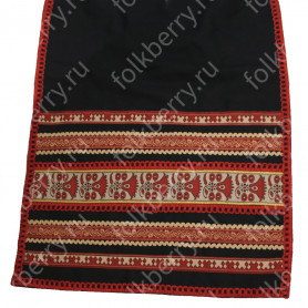 Косоворотка украшена жаккардовой тесьмой и вьюнком, контрастирующей по цвету с основной тканью. В комплекте с изделием идет кушак.