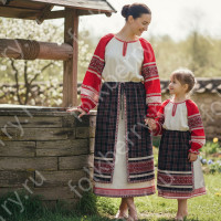 При заказе, пожалуйста, пишите обхват груди и рост. Платье будет выполнено с учетом Ваших мерок в течении 2-5 дней. Стоимость платья при этом останется стандартной. Стоимость платья зависит от размера.К платью "Вологда" в нашем магазине можно подобрать очелье или кокошник, сумочку, комплект для мальчика.